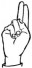На ћирилици написано МИЉЕНКО ГОЧАНИН састоји се из 14 слова [?]. Исписано ћириличном једноручном азбуком за глувонеме: